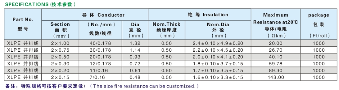 XLPE 并排线是一款符合 UL758/1581 标准的扁平带状线缆,它以单根或绞合的裸铜 / 镀锡铜为导体,外层包覆硅橡胶绝缘层,可在 125℃至 150℃的高温环境下稳定运行,额定电压为 300V/600V。 该线缆通过了 UL VW-1 及 CSA FT1 垂直耐燃测试,具备优异的耐高温、耐燃、耐油及耐磨性能,同时扁平结构便于密集布线。它主要用于家用电器、照明灯具、工业机械及电子产品等场景的内部布线,尤其适合对空间利用率和耐热性有较高要求的场合,也支持特殊规格定制。