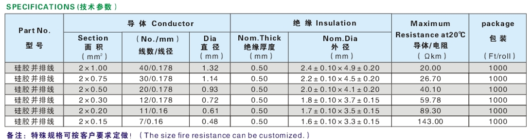Flat Ribbon Silicone Rubber Wire is a flat ribbon cable that complies with the VDE 0282-3 standard. It features solid or stranded bare/tinned copper conductors and silicone rubber insulation, enabling stable performance in high-temperature environments from 180℃ to 200℃, with a rated voltage of 450V/750V.